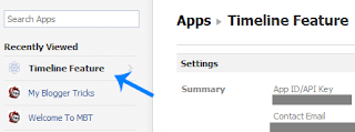3. Towards your left you will see apps. Choose the app you created for timeline. In my case I named it Timeline Feature.
